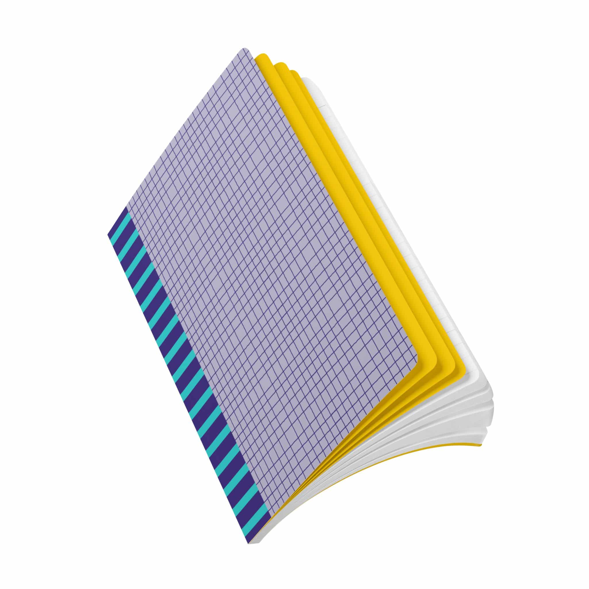 Lavender softcover journal with 120gsm paper and perforated pages. Features artistic grid design, perfect for creative journaling.