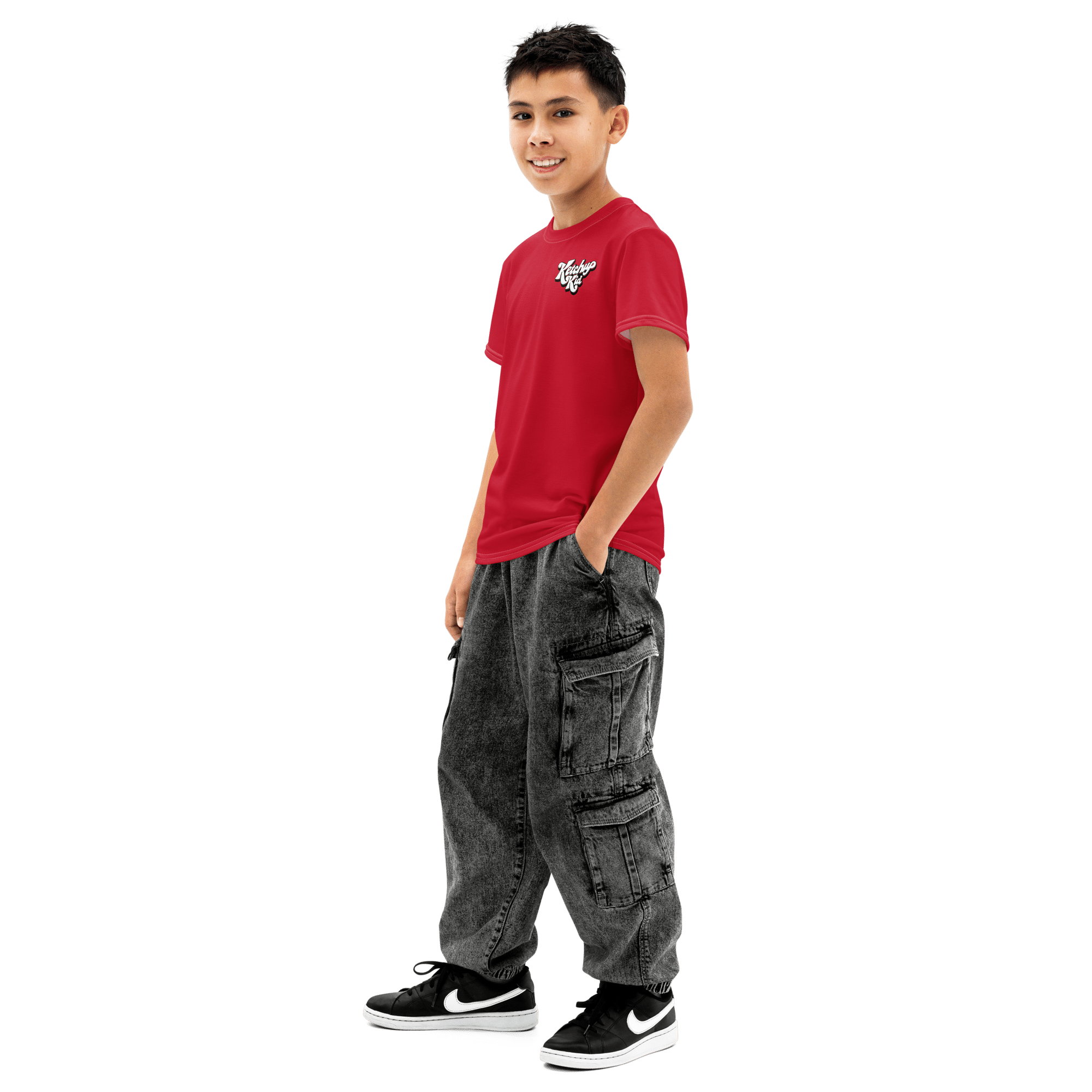 Comfortable, durable Youth Ketchup Kid Graphic Tee. 96% cotton, 4% elastane blend, regular fit, and slight stretch. Featuring the iconic condiment mascot. Mindfully made to order for sustainable style.